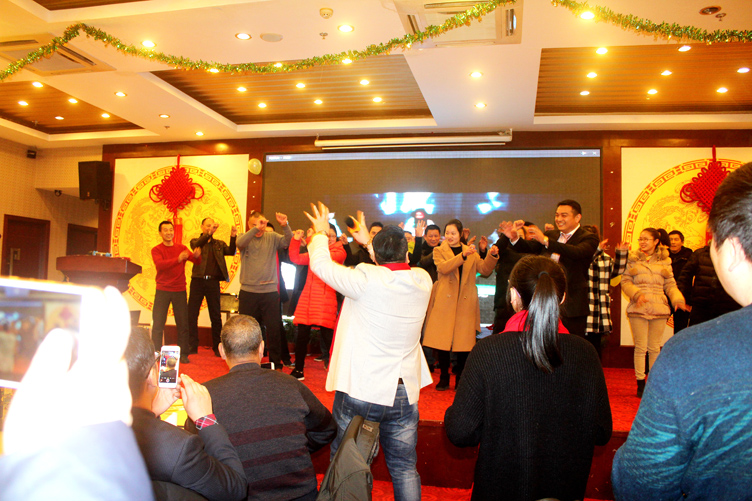 年會有主持人精彩而又真情的新年獻詞中拉開帷幕,在總經理童海標先生的帶領下全體銷售員熱跳“抓錢舞”而漸進年會高潮。在各位部門負責人上臺講話后,由總經理童海標先生向全體同仁送上誠摯的新年祝福和向全體員工表達感恩之心。