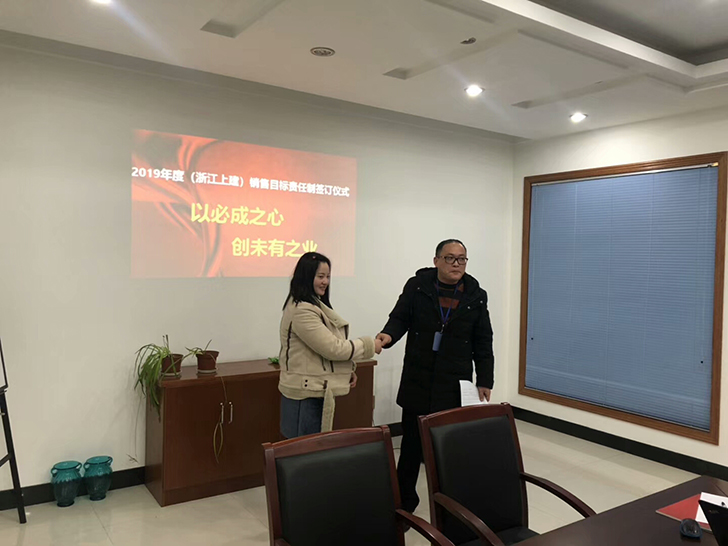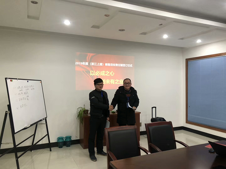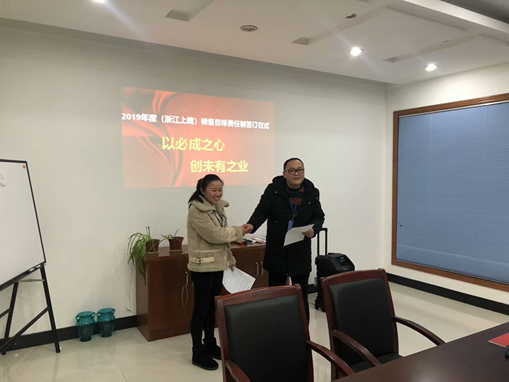 為保證公司2019年度經營目標順利實現,建立績效管理體制和激勵約束機制,強化企業執行力,提升公司競爭力,2019年1月14日公司舉行了銷售目標責任制簽訂儀式。目的是通過這樣儀式,把責任形式確定下來,讓每位銷售員更加明確自身工作責任和壓力,增強意識,提高認識,推進公司各項工作在新的一年里更上一臺階。