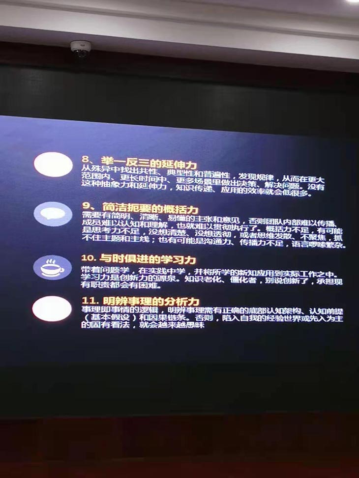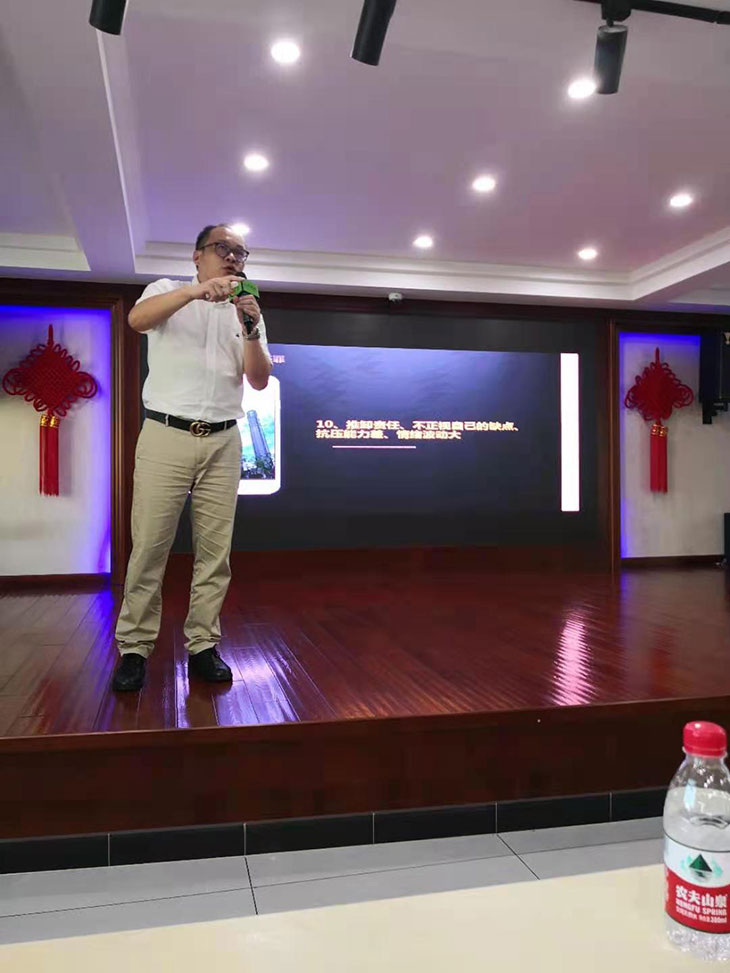 沈老師從公司實際情況出發,結合公司現有的管理隊伍整體存在問題入手,深入剖析了職場中的10宗罪,需要提煉的7項修煉,和提高自身的21種能力,以淺而易懂的道理,引用管理大師的經典語錄進行了有效的闡述講解。大家聆聽的都很認真,都有認真的做著筆記,會后公司要求大家結合自身工作現狀,對照講課內容,剖析下自己存在的問題,要求寫一篇心得。