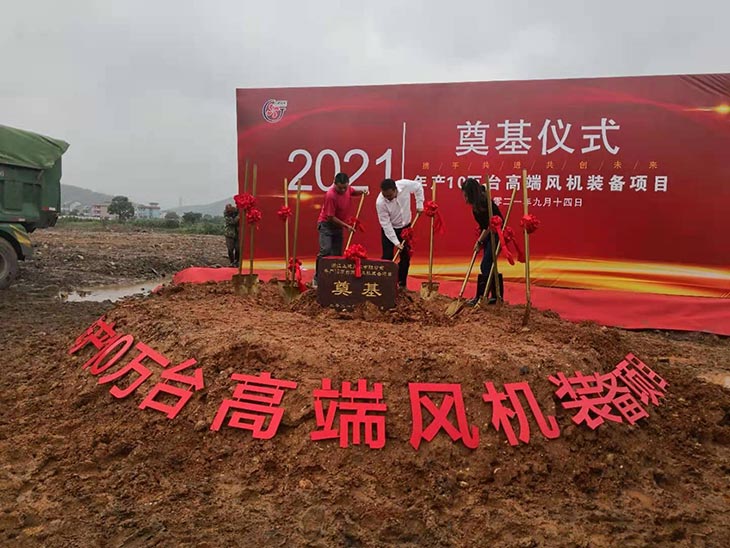 2021年9月14日上午,浙江上建風機有限公司年產(chǎn)10萬臺高端風機項目奠基儀式在紹興市上虞區(qū)豐惠新城開發(fā)區(qū)建設(shè)基地簡約而不隆重的舉行。在公司董事長兼總經(jīng)理童海標帶領(lǐng)公司經(jīng)理級以上全體管理者共同參加了本次儀式。