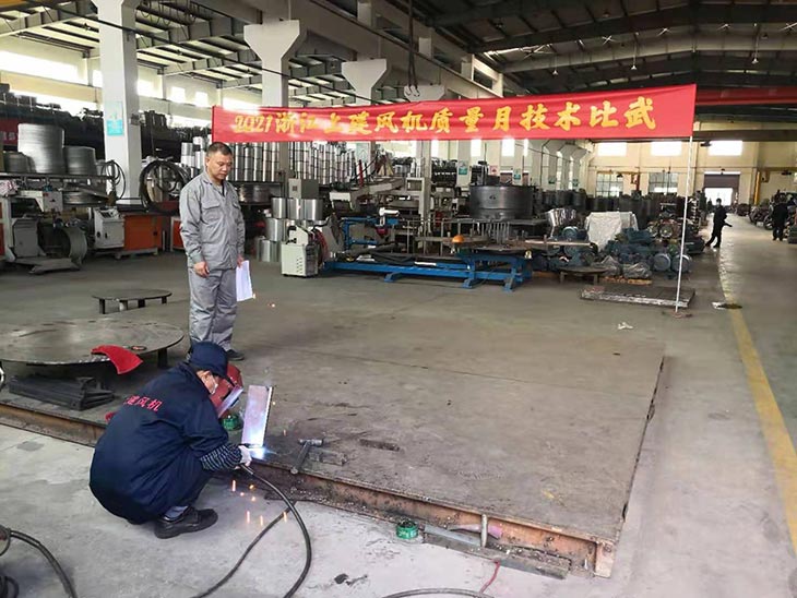 10月29日上午8點半,比武正式拉開帷幕,來自各車間的19名焊工選手參與比武,比武開始前,公司品管部長宣布了比武的項目、要求、規則。在這次比武中特設了特殊材料不銹鋼的焊接比武,增加了技術含量,也能讓選手可以盡情展示自我最好的技術水平。為確保公平、公正、公開,由總經理為組長、制造部長、技術部長、品管部長及外聘焊接高級技工師傅為成員組成的強大評判組。選手們分別用不同的編號代替,以標注在焊接完成的作品上,以示公正、公平。比武緊張有序的進行著,焊接作業上火花四濺,選手們個個全神貫注,大家用自己平時工作結累的最好技術,最好比賽狀態投入在比武中。經過近一天緊張的角逐,最后由軸流車間的青年員工王紹基拔的頭籌,獲得一等獎;風閥車間的李建軍和制造工藝部的鄭龍兩位青年員工分別獲得二等獎;軸流風機車間的楊秀剛、梁伯春以及箱體風機車間的夏建江三位老師傅分別獲得了三等獎。