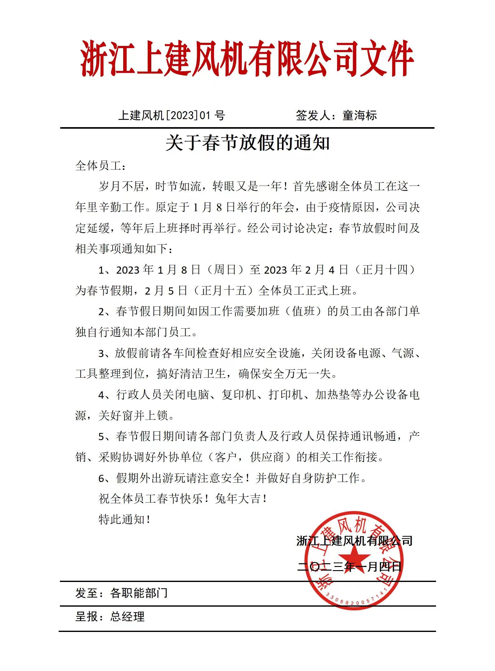 1、春節放假時間:2023年1月8日至2023年2月4日,共28天;2月5日(正月十五)正式上班。