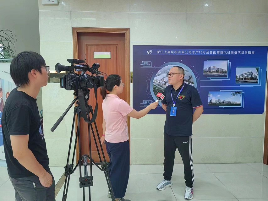 沈總經(jīng)理首先向到訪記者介紹了上建風(fēng)機(jī)概況以及經(jīng)典項(xiàng)目案例,其中提到了公司參建杭州亞運(yùn)會(huì)亞運(yùn)村與手球館的項(xiàng)目案例——我司在產(chǎn)品方案設(shè)計(jì)上貫徹“綠色、智能、節(jié)儉、文明”的亞運(yùn)會(huì)辦賽理念,打造高效、節(jié)能、環(huán)保的通風(fēng)設(shè)備積極響應(yīng)亞運(yùn)會(huì)場(chǎng)館與住所的建設(shè)工作。貝總監(jiān)簡(jiǎn)述了上建風(fēng)機(jī)30多年發(fā)展的歷史,總結(jié)了公司各個(gè)發(fā)展階段的歷程與重要時(shí)刻,并介紹了公司目前擁有的暖通設(shè)備研發(fā)資源以及下一步發(fā)展舉措。