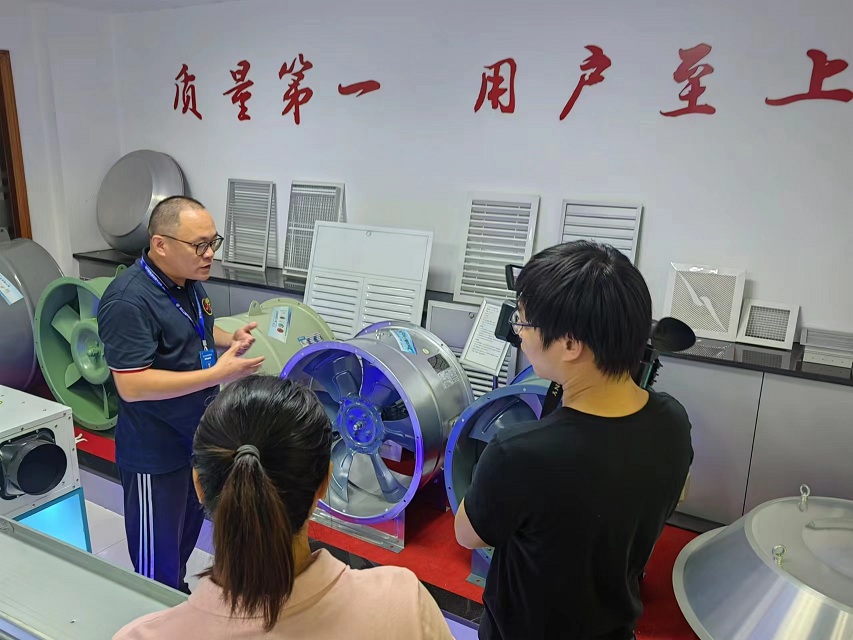 最后采訪記者進(jìn)入車間進(jìn)行拍攝,作為風(fēng)機(jī)市場(chǎng)最早的開拓者之一,我司目前已經(jīng)有了完善的產(chǎn)品鏈以及未來幾年內(nèi)的產(chǎn)品規(guī)劃。目前市場(chǎng)中的HTFC系列柜式離心風(fēng)機(jī),SJF系列高效節(jié)能軸流風(fēng)機(jī)和RTC系列新型屋頂風(fēng)機(jī)都受到了廣泛好評(píng),消防排煙防火閥、多葉送風(fēng)口、消聲器等產(chǎn)品都有生產(chǎn)線,精湛的工藝與高效的生產(chǎn)得到采訪記者的嘖嘖稱贊。