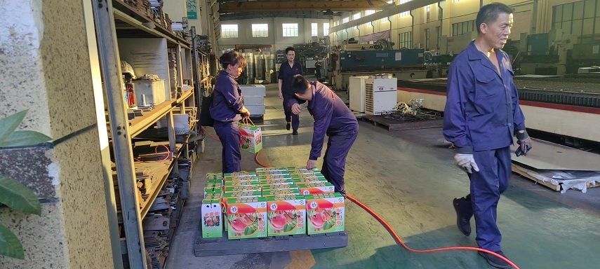 一個個芳香四溢、晶瑩圓潤的桃子,被仔細地放在盒子里。每位員工都可領取一盒,每一盒都彰示著公司對忠誠奉獻上建人的滿滿心意與愛意。