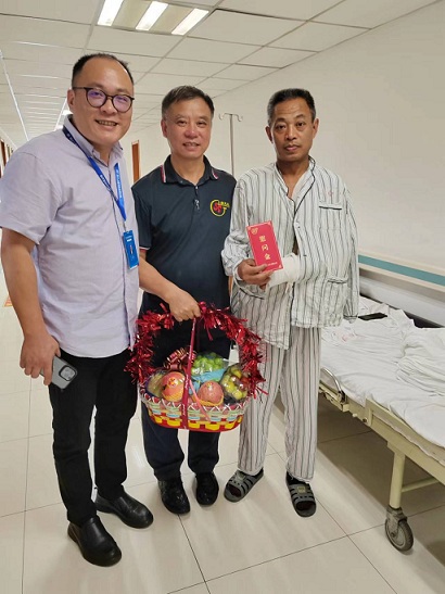 7月14日,我司總經理沈利偉、工會主席貝建波、品質管理部總監譚建江一行看望慰問因公受傷的徐永明同志。并代表公司向徐永明同志送去慰問品,將公司的關懷送到員工心中。