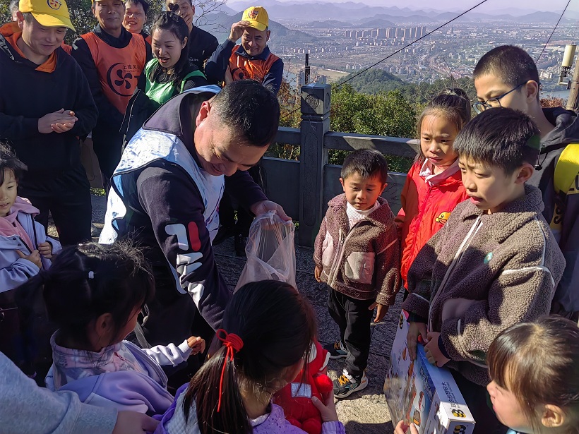 登上山頂后合影留念。公司領導贊揚了大家在登山過程中表現出來的團結互助精神和堅韌不拔的毅力,并希望大家在以后的工作中,繼續發揚登高精神,為上建風機的和諧發展做出更大的貢獻。最后我們公布了男女組的競賽成績,我們親愛的童海標董事長更是為員工的子女頒發了精美禮品。
