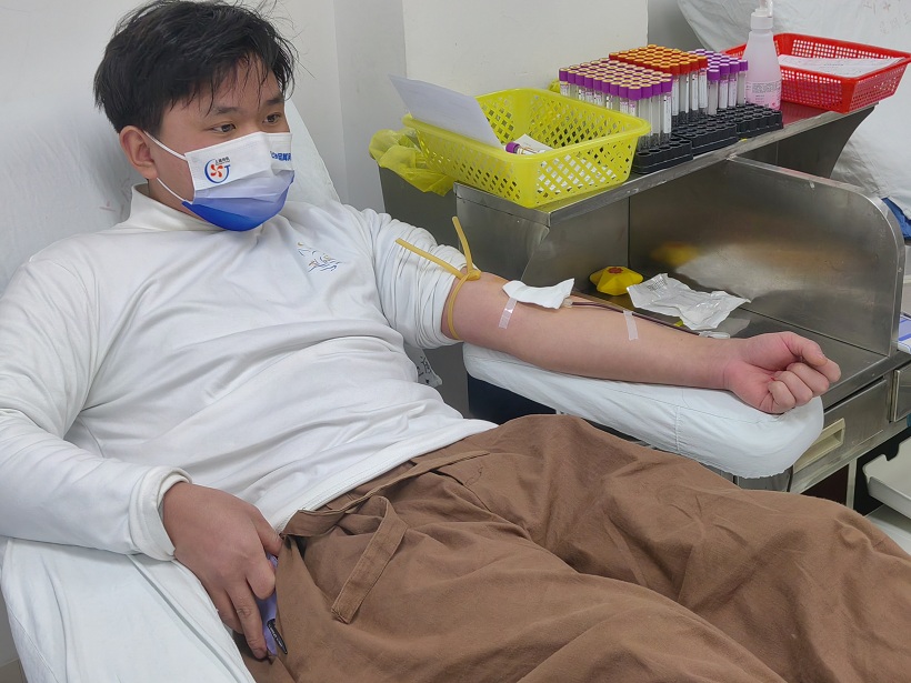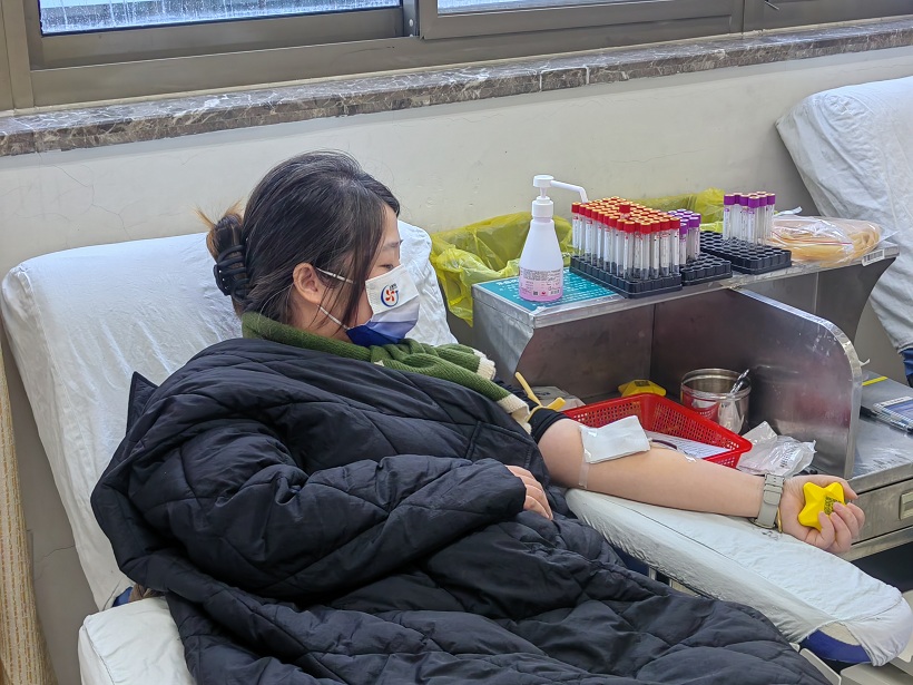 隨后,他們依次走進采血室,挽起袖子,獻出一袋袋飽含溫度的血液。其中有第一次來獻血的“新生力”,也有熟門熟路的“老血包”了,個個都熱情高漲。