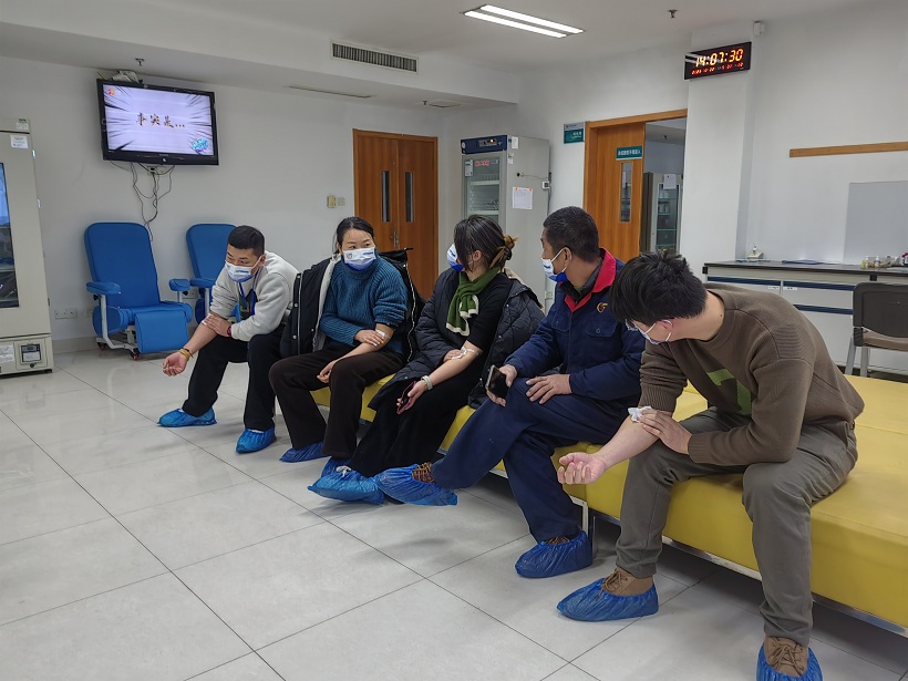 下午13:30,在紹興市中心血站上虞采供血點,前來獻血的員工按照工作人員的指引有序進行著填表、量血壓、驗血等流程。